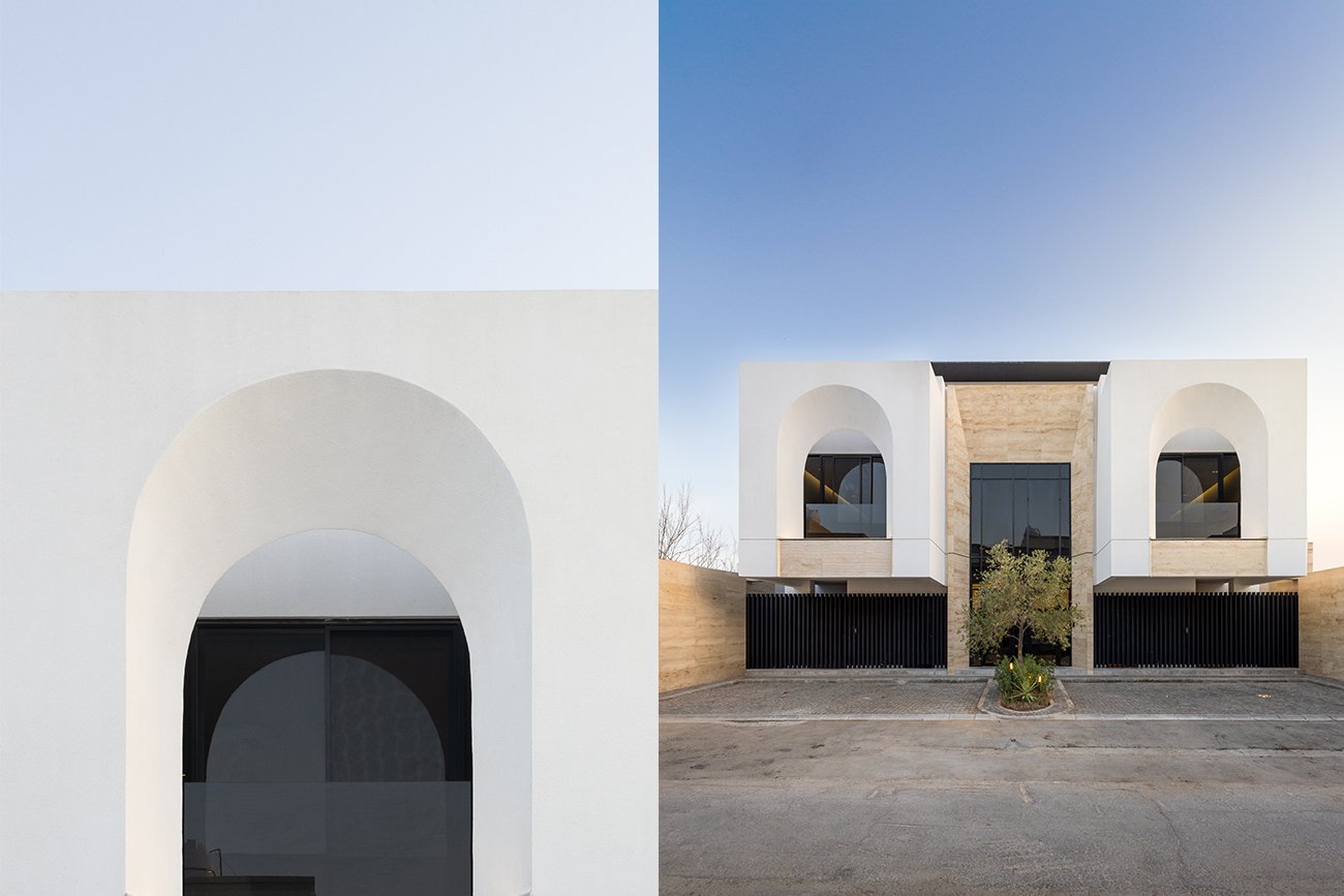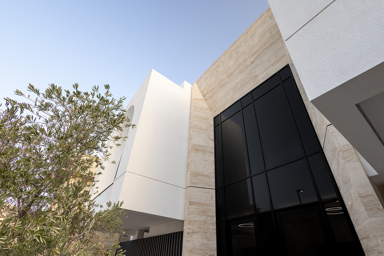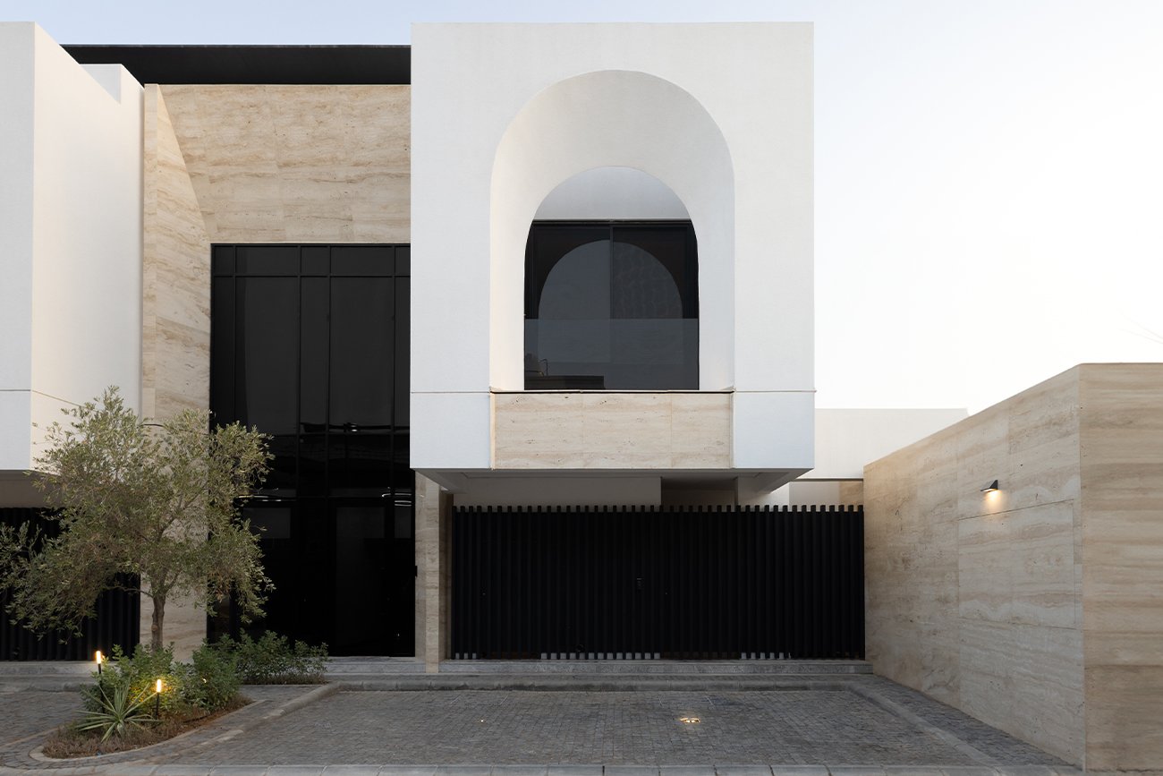 Value 06 is a modern residential development located in Al Olaya District, Riyadh, built on a 660 m² plot and consisting of six residential units, with sizes ranging from 127.80 m² to 225 m². The architectural design features a harmonious façade that blends simplicity with dynamic volumes. Semi-circular arches on the upper level serve as distinctive visual elements, while the central entrance mass—clad in natural stone and featuring a double-height opening—highlights the project’s main access point.